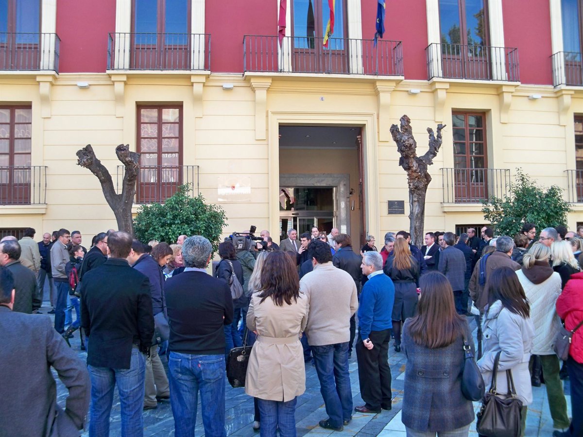 Un centenar de personas se concentraron, convocados por el sindicato C-SIF, a las puertas de la Consejería de Cultura y Turismo, ubicada en la plaza Julián Romea, en un acto de "desagravio" con motivo de la "bárbara" agresión recibida por el consejero del ramo, Pedro Alberto Cruz este sábado.