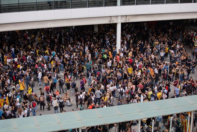 Manifestantes en el aeropuerto de Barcelona-El Prat. David Zorrakino / Europa Press