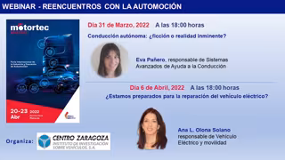 La conducción autónoma y la reparación de los vehículos eléctricos será el tema de dos encuentros que tendrán lugar los próximos 31 de marzo y 6 de abril, organizados por Centro Zaragoza, en el marco de los preparativos de la próxima edición de Motortec Madrid, en el Recinto Ferial de Ifema Madrid del 20 al 23 de abril.