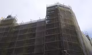 El edificio, que ocupa el número 9 de la Plaza de las Cortes, esquina con la calle San Agustín, lleva meses protegido con andamios. Como los otros cuatro edificios en los que se reparten las dependencias parlamentarias, es propiedad de Patrimonio Nacional, pero está cedido al Congreso.