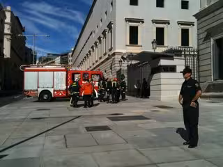 De inmediato llegó una ambulancia del SAMUR a la Plaza de las Cortes, pero no se dio la misma diligencia en el caso del Cuerpo de Bomberos, cuyo vehículo no apareció hasta transcurridos veinte minutos. Los bomberos vienen protestando ante el Ayuntamiento de Madrid por falta de efectivos, acusando al equipo municipal que dirige Alberto Ruiz Galardón, de desatender este servicio. De hecho, el primer coche de bomberos que llegó al Congreso estaba adornado con pintadas reivindicativas.