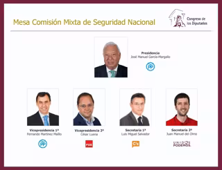 Además del exministro de Asuntos Exteriores, la Mesa de la Comisión Mixta de Seguridad Nacional se ha completado con la elección del vicepresidente primero, el 'popular' Fernando Martínez Maíllo; el vicepresidente segundo, el socialista César Luena; el secretario primero, Luis Miguel Salvador (Ciudadanos); y el secretario segundo, Juan Manuel del Olmo (Unidos Podemos).