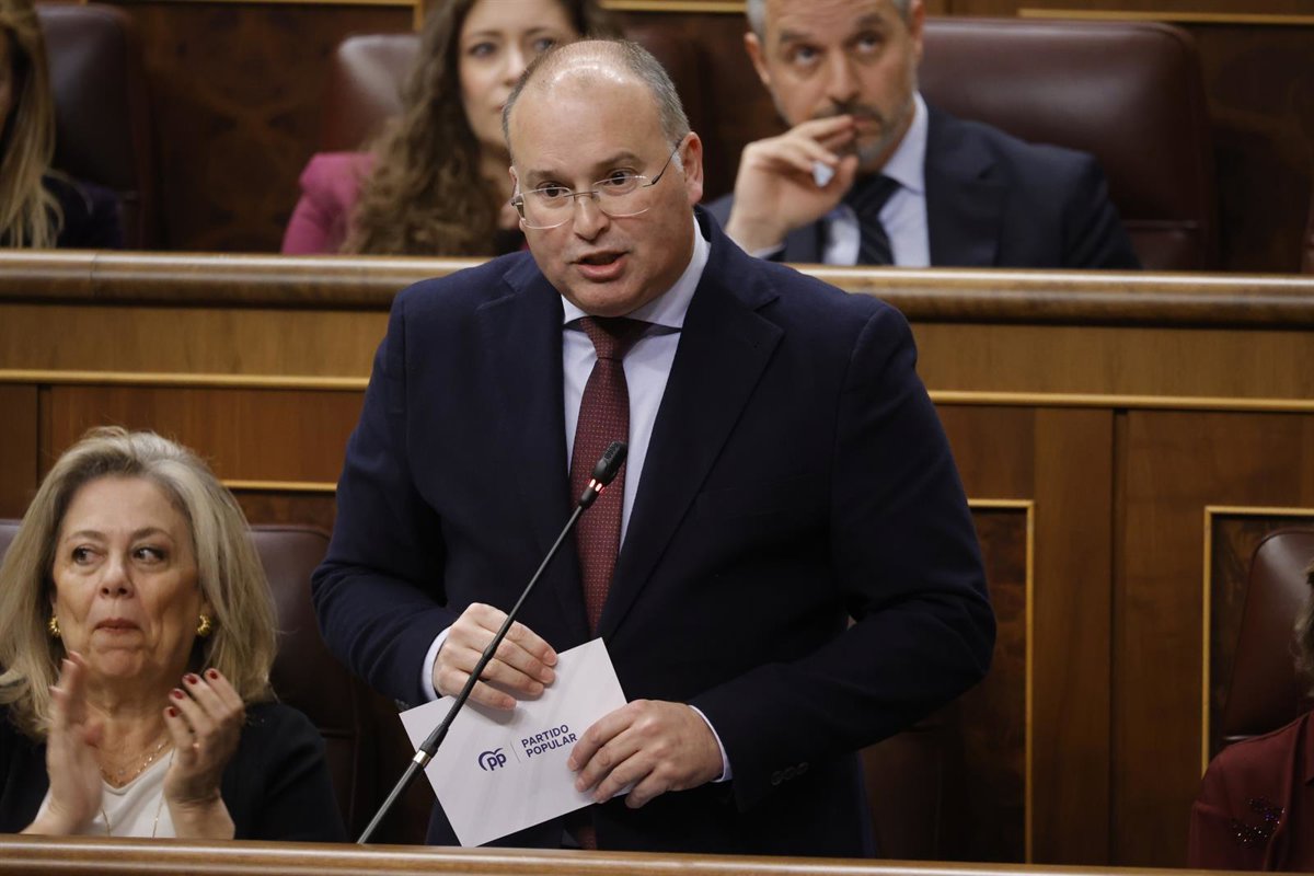 El portavoz del PP en el Congreso, Miguel Tellado, interviene durante una sesión de control al Gobierno en el Congreso de los Diputados, a 26 de febrero de 2025, en Madrid (España). - Jesús Hellín - Europa Press
