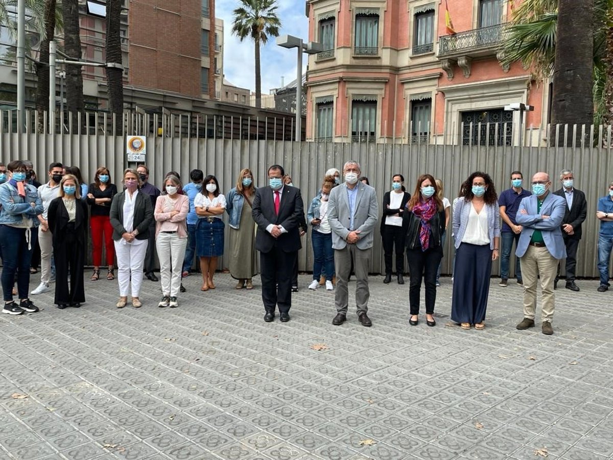 El conseller Joan Ignasi Elena durante el minuto de silencio en la Conselleria de Interior de la Generalitat
