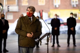 El consejero de Transportes, Movilidad e Infraestructuras de la Comunidad de Madrid, Ángel Garrido, durante su intervención en su visita al intercambiador de Plaza de Castilla, en Madrid (España), a 18 de enero de 2021. Garrido se ha trasladado hasta al - Óscar Cañas - Europa Press