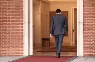 El presidente del gobierno, Pedro Sánchez, tras una rueda de prensa en Moncloa tras participar en la reunión del Consejo Europeo Extraordinario sobre el Coronavirus, en Madrid (España), a 26 de febrero de 2021. En esta primera rueda de prensa desde fina - EUROPA PRESS/E. Parra. POOL - Europa Press