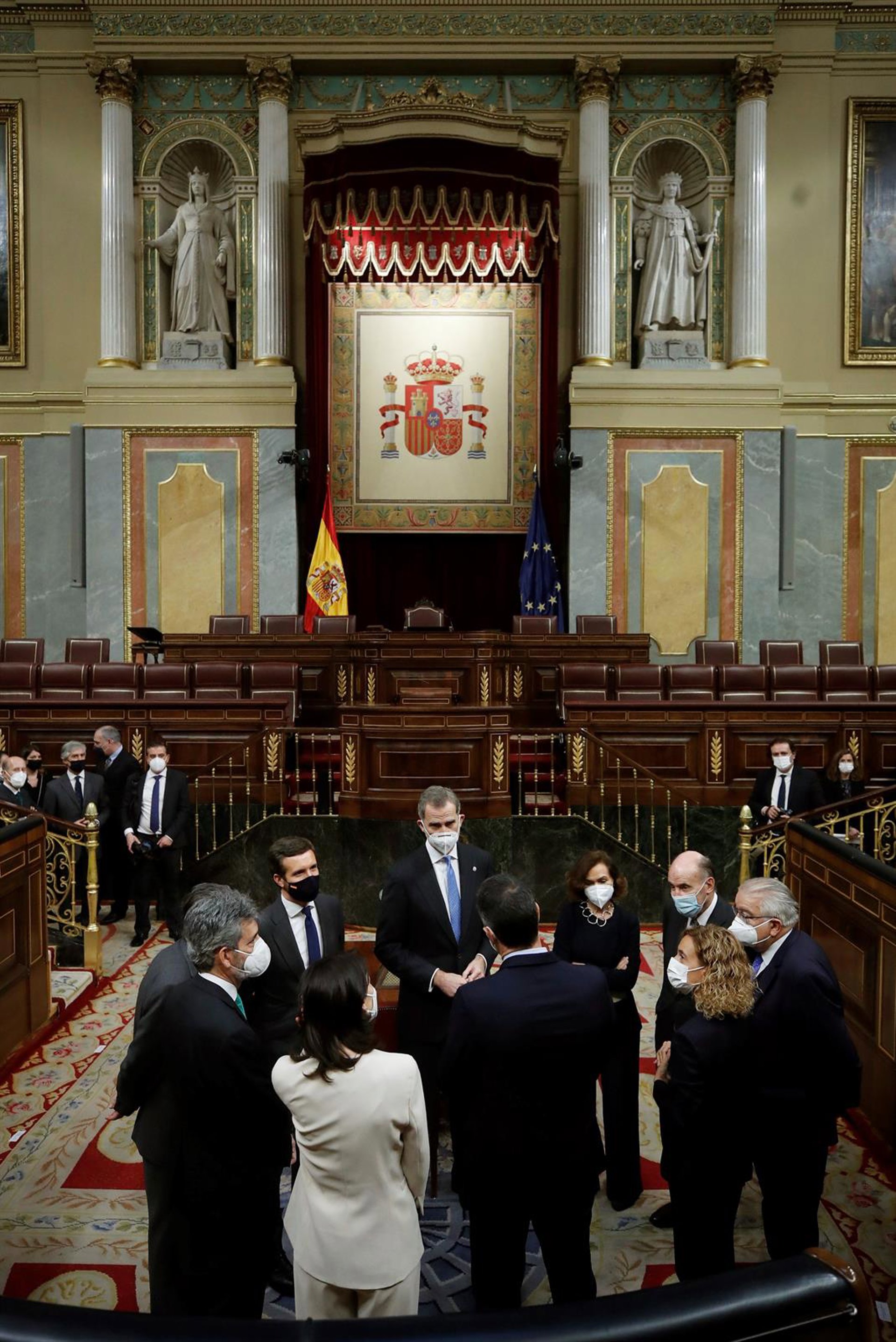 Archivo - El rey Felipe VI conversa con 'padres de la Constitución' y dirigentes políticos en el último aniversario que presidió en el Congreso - Pool - Archivo