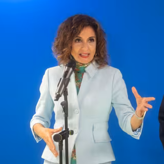 La ministra de Hacienda y Función Pública en funciones, María Jesús Montero, atiende a los medios de comunicación en el Edificio Fontán, a 26 de octubre de 2023, en Santiago de Compostela, Galicia (España). Durante su visita a Galicia, la ministra ha in - César Arxina - Europa Press