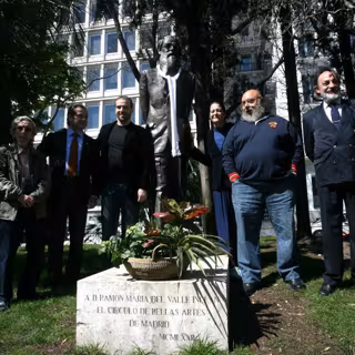 La crisis económica protagonizó el acto anual de imposición de la bufanda a la estatua de Ramón María del Valle-Inclán, ceremonia que abre las celebraciones del Día Mundial del Teatro.