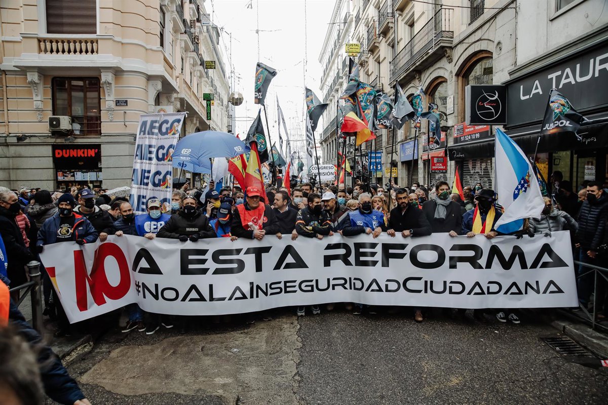Aunque con discrepancias en el inicio de las convocatorias contra la reforma de la 'ley mordaza', en la manifestación de este sábado han estado presente sindicatos tradicionales de la Policía como el SUP, así como otros de la Guardia Civil, como el caso de AEGC. La mayoría habían secundado en la previa la protesta de Jusapol, como hizo esta plataforma con las convocadas el pasado miércoles frente a delegaciones del Gobierno.