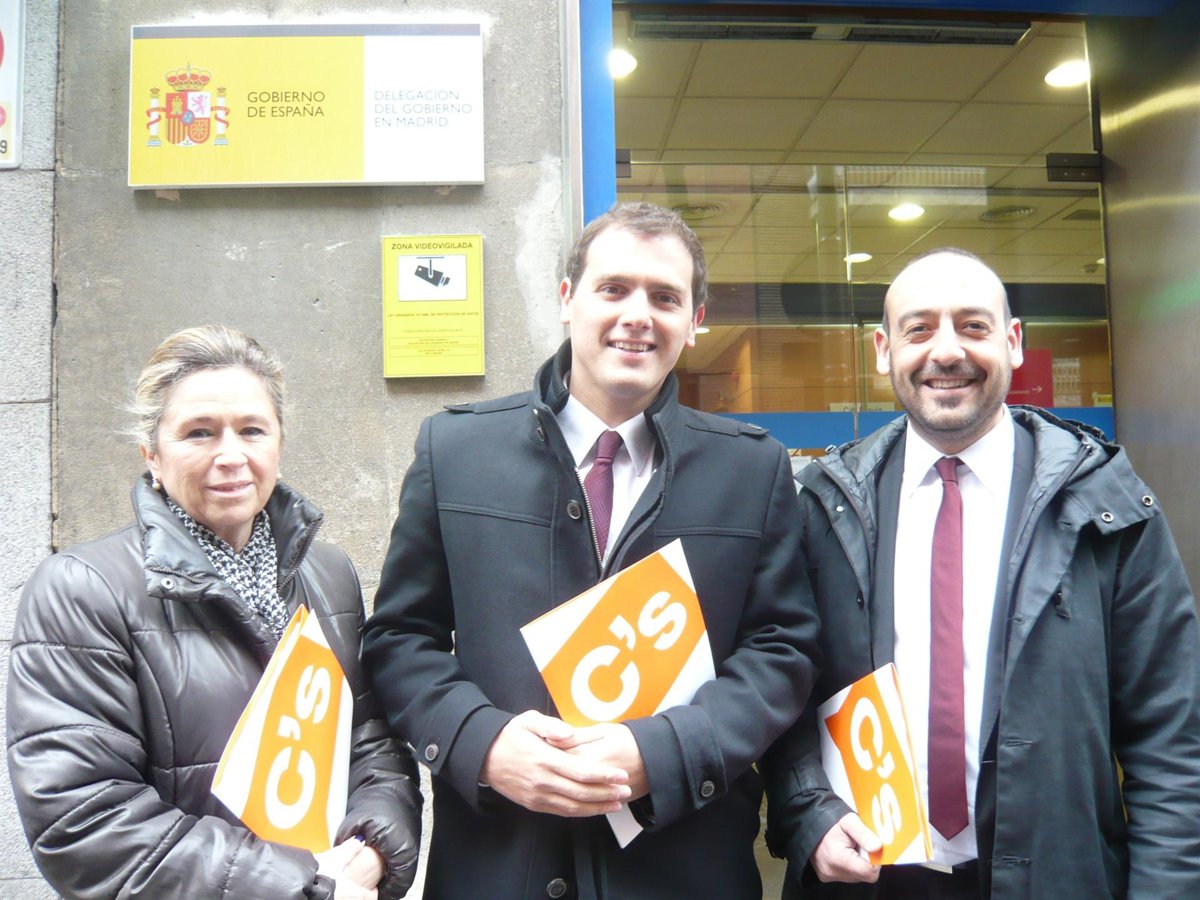 El presidente de C's, Albert Rivera, junto a otros dirigentes del partido, han presentado ante la Delegación del Gobierno en Madrid una instancia para que el Ejecutivo impugne ante el Tribunal Constitucional (TC) el acuerdo de la Mesa del Parlamento catalán de admitir a trámite la ley de declaración unilateral de independencia presentada por SI.