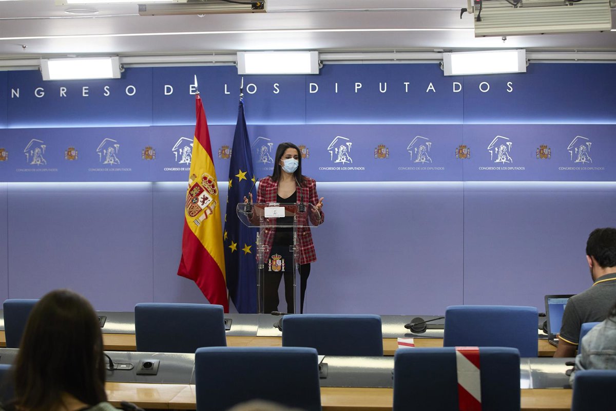 La líder de Cs, Inés Arrimadas, interviene en una rueda de prensa anterior a una Junta de Portavoces, a 20 de abril de 2021, en el Congreso de los Diputados, Madrid, (España). - EUROPA PRESS/J. Hellín. POOL - Europa Press