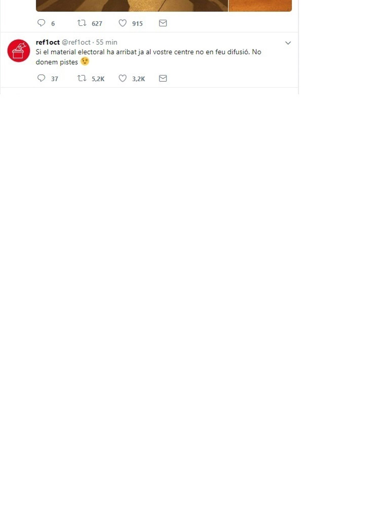 "Si el material electoral ha llegado ya a vuestro centro no hagáis difusión. No demos pistas", dice el mensaje de poco antes de las 7 horas de la mañana, que ha recibido más de 5.000 retuits.