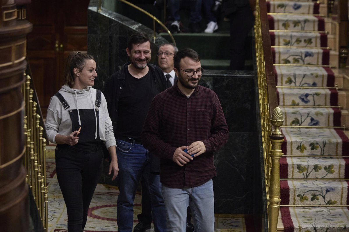La portavoz de la CUP en el Congreso, Mireia Vehí (1i) y el diputado de la CUP Albert Botran (d), a su llegada a una sesión plenaria en el Congreso de los Diputados. - Jesús Hellín - Europa Press