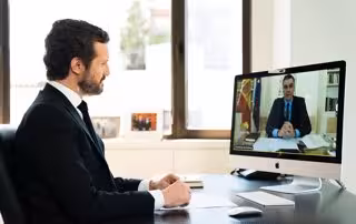 El líder del PP, Pablo Casado, conversa por videoconferencia con el presidente del Gobierno, Pedro Sánchez. Madrid. 20 de abril de 2020. - DAVID MUDARRA (PP)