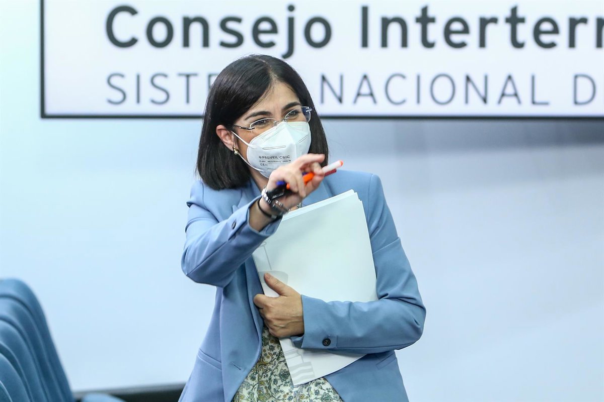 La ministra de Sanidad, Carolina Darias, a su salida de una rueda de prensa posterior a la reunión del Consejo Interterritorial del Sistema Nacional de Salud, a 26 de mayo de 2021, en Madrid (España). El Ministerio de Sanidad y las comunidades autónomas - EUROPA PRESS/R.Rubio.POOL - Europa Press