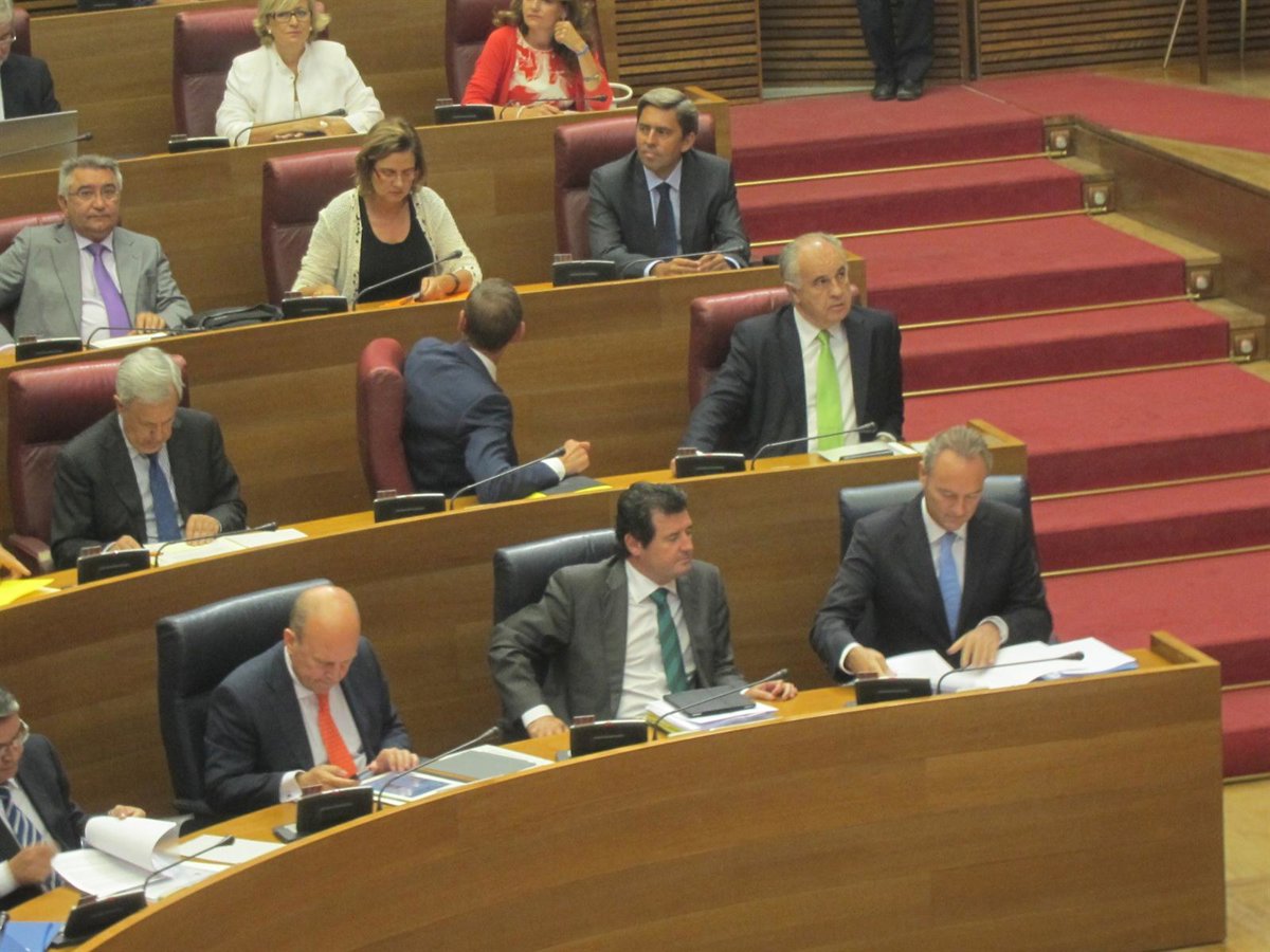 Fabra, junto al titular de Hacienda, José Manuel Vela, ha encabezado este martes el grupo que ha entrado a las Cortes autonómicas cuando quedaban dos minutos para comenzar el Debate de Política General. Junto a él estaban también los consejeros Máximo Buch, Lola Johnson, José Císcar y Luis Rosado, además del síndic en funciones del grupo popular en las Corts, Rafael Maluenda. Cerrando el grupo, el portavoz sin funciones del PP en la cámara autonómica, Rafael Blasco.