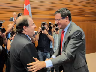El Debate de Investidura de Juan Vicente Herrera como presidente de la Junta de Castilla y León ha arrancado este jueves a las 11.05 horas con el saludo al portavoz del Grupo Parlamentario Socialista, Óscar López, como protagonista de la entrada de presidente electo en el Hemiciclo.