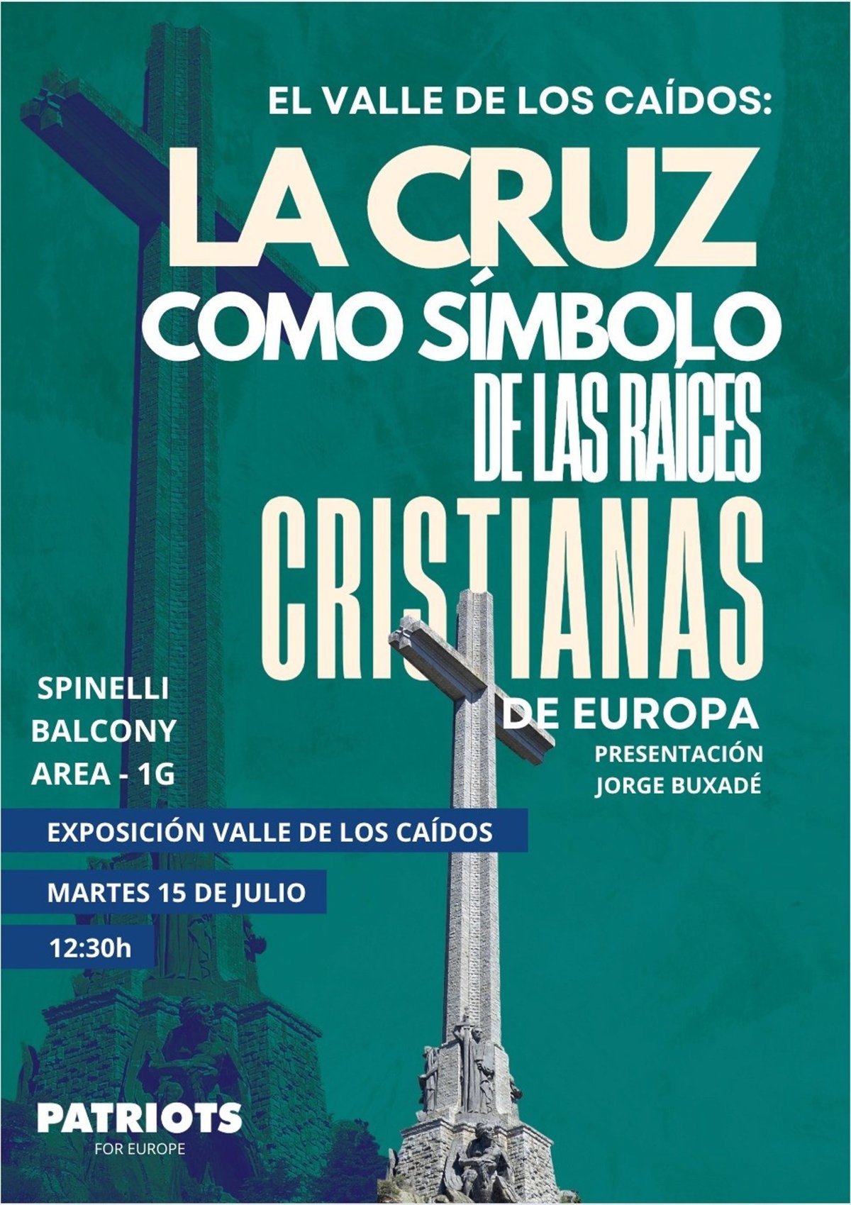 Poster de la muestra 'La Cruz como símbolo de las raíces cristianas', organizada por Vox en el Parlamento Europeo y dedicada al Valle de los Caídos. - VOX