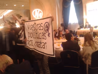 Antes de dejar el hotel, las jóvenes han repartido algunos panfletos en los que cargan, entre otras cosas, contra los recortes, la privatización de los servicios públicos, la "legalización de la represión social" y la "impunidad" ante la violencia de género, así como contra el sistema "heteropatriarcal, capitalista y racista".