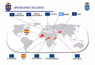 En total, España tiene desplazados en África 400 de los 1.500 efectivos destinados en actualmente misión internacional. Se reparten concretamente en Dakar (Senegal), Mogadiscio (Somalia), Bamako y Koulikoro (Mali), Libreville (Gabón) y Bangui (República Centroafricana), países a los que oficialmente no ha llegado el virus.