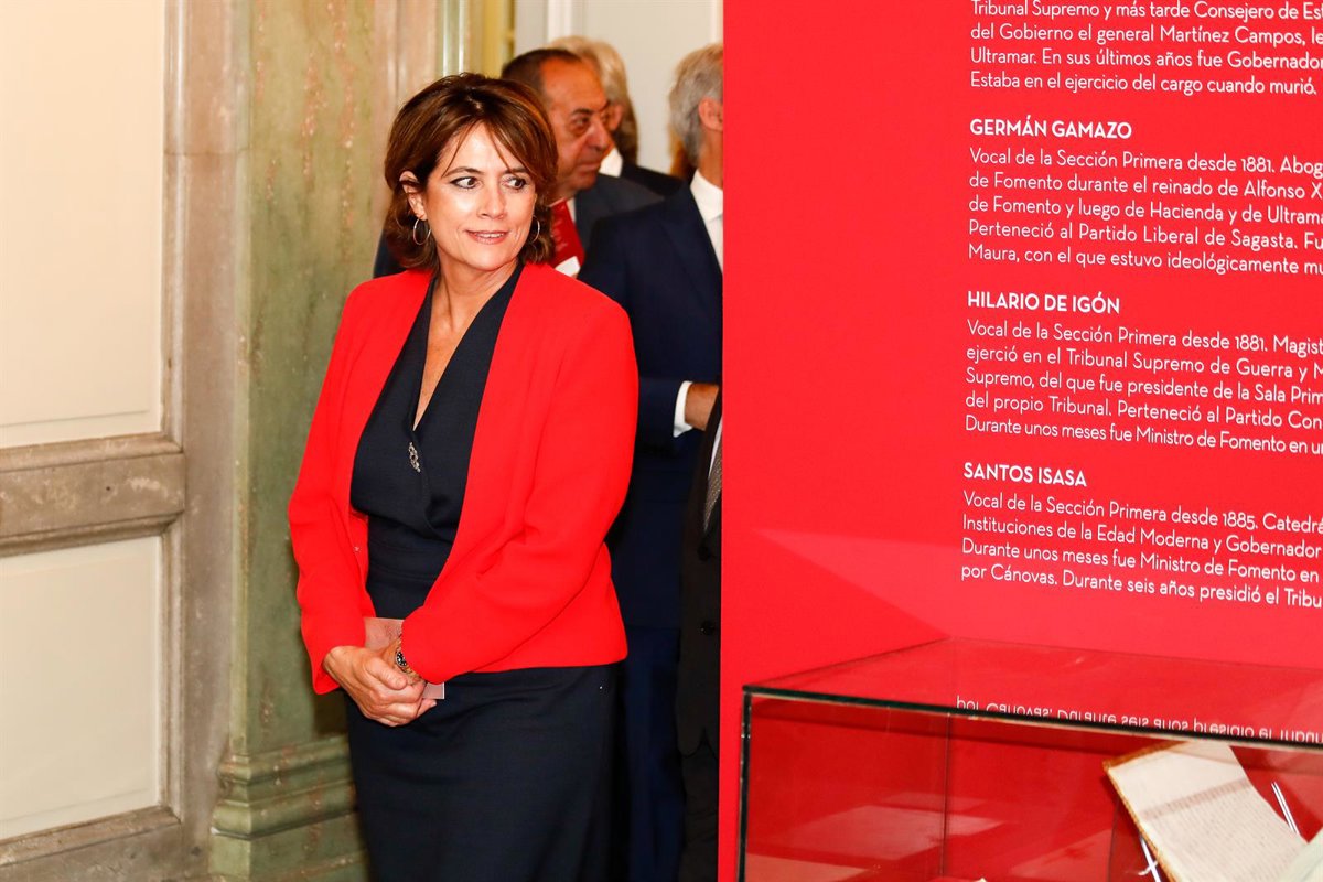 La ministra de Justicia en funciones, Dolores Delgado, en la inauguración de la exposición dedicada al '130 aniversario del Código Civil'. - Óscar J.Barroso - Europa Press