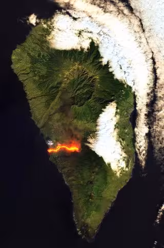 Imagen satélite de la colada de lava en la isla de La Palma - MINISTERIO PARA LA TRANSICIÓN ECOLÓGICA