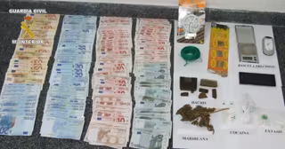 En total, han sido intervenidos 35 gramos de cocaína, 150 gramos de hachís y 40 gramos de marihuana, así como 5.000 euros en efectivo, una báscula de precisión y material para el corte y elaboración de la droga.