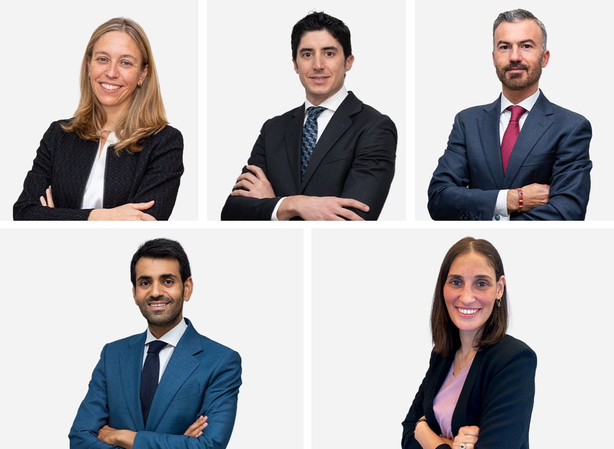 Los cuatro nuevos miembros de Pérez-Llorca de izquierda a derecha: Rais Amils, Andy Ramos, Cosme Colmenero, Nasif Hamed y Adriana Martín. - PÉREZ-LLORCA