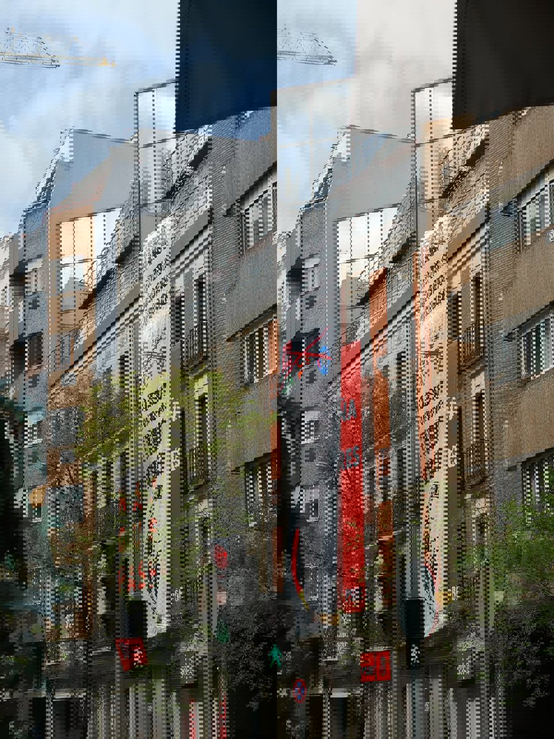 La lona, de unos metros de longitud, ha cubierto por completo la pancarta que los socialistas tenían desplegada en la fachada de su sede y en la que podía leerse el lema de campaña del PSOE, 'La España que quieres'.