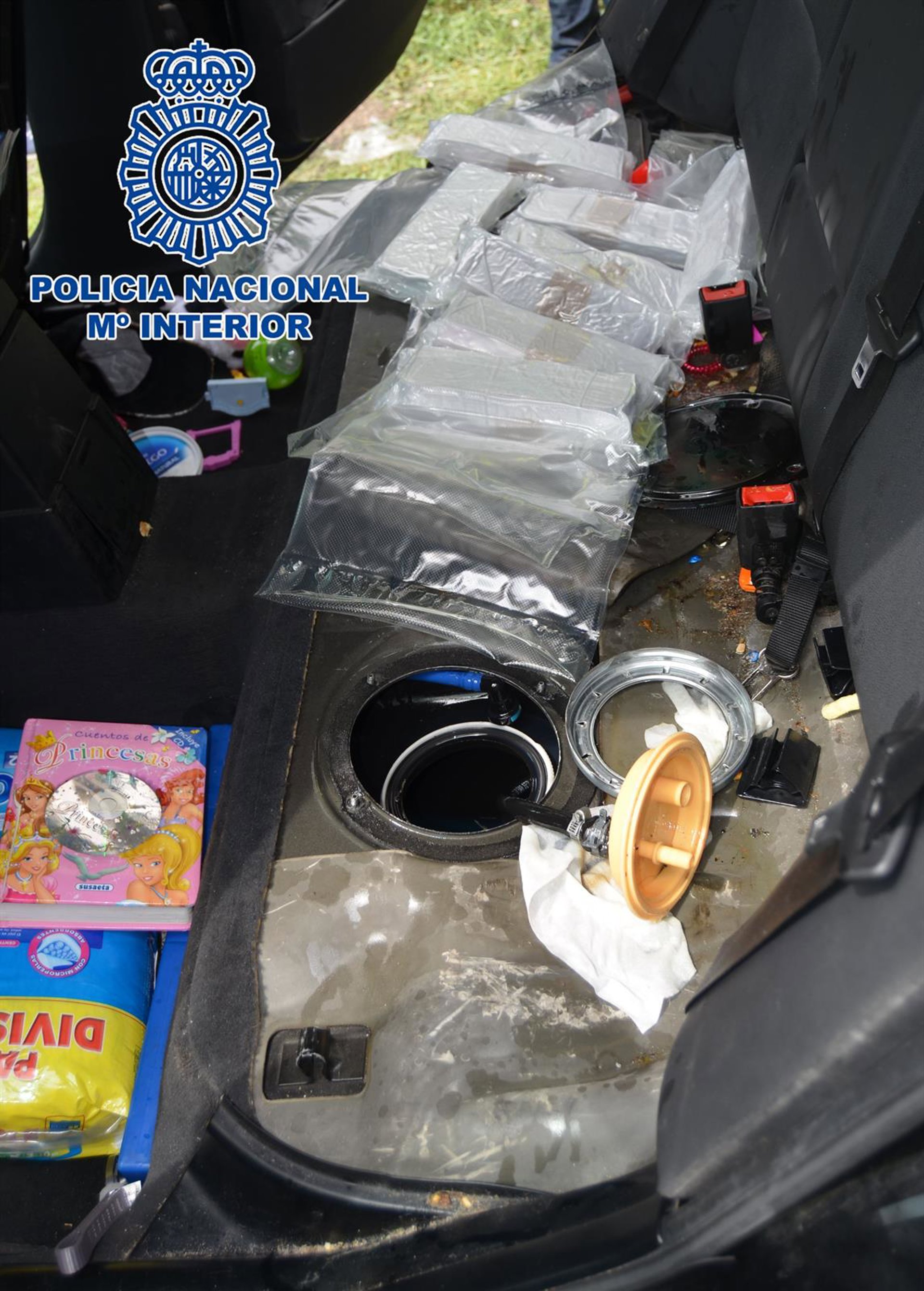 Los agentes detuvieron a la pareja después de registrar el vehículo y encontrar en el depósito de combustible ocho paquetes rectangulares envasados al vacío que contenían 4.766 gramos de cocaína y 800 euros en efectivo.