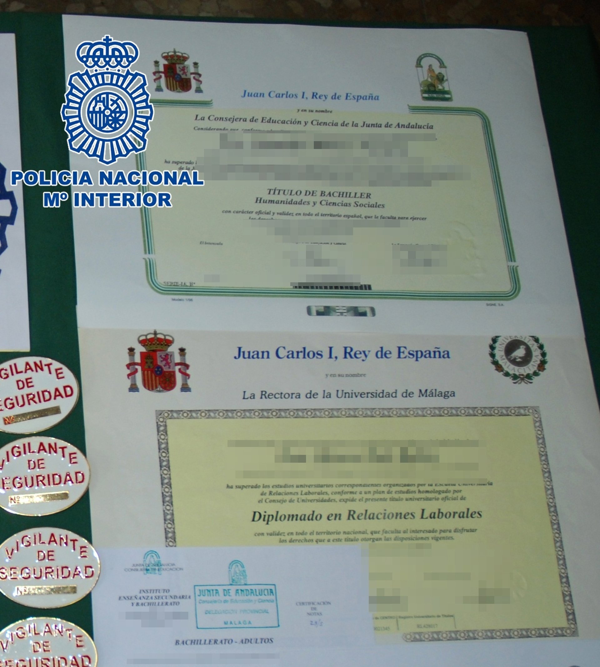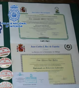 Como fruto de las investigaciones, la Policía Nacional logró la identificación y detención del presunto falsificador, M.C.F., nacido en 1945 y propietario de un centro de estudios en Málaga, que era usado como cobertura para distribuir los supuestos títulos.