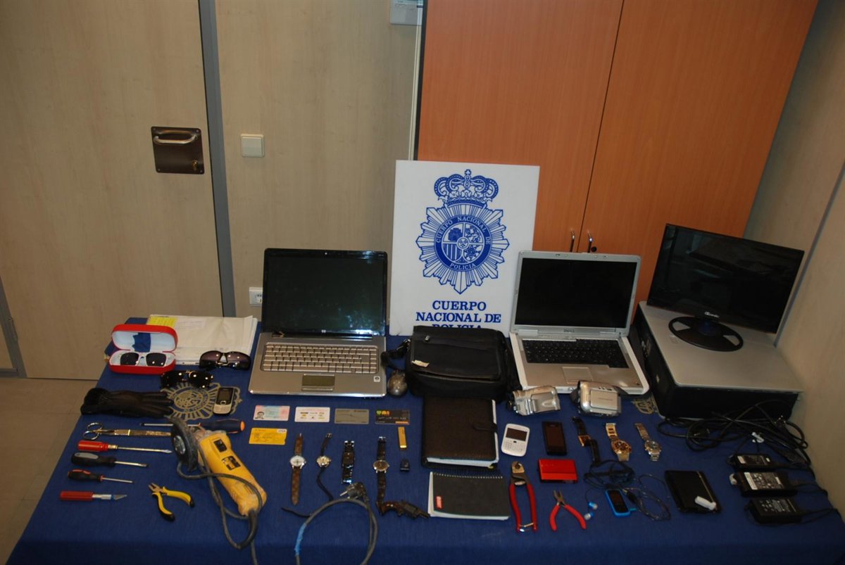 Según ha informado la Policía, en las dos entradas y registros de los domicilios que esta organización tenía habilitados para esquivar la vigilancia policial, se ha intervenido gran cantidad de relojes de conocidas marcas, material electrónico como cámaras de video y fotográficas, Mp4, ordenadores, teléfonos móviles de alta gama, tarjetas de crédito denunciadas en otras localidades, e incluso un revolver.