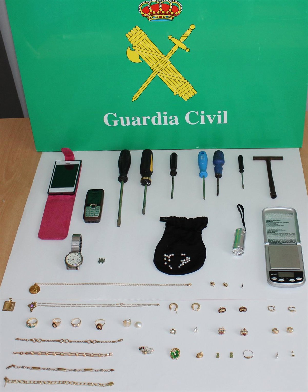 Han sido recuperadas más de 60 piezas de joyería, entre anillos, pulseras, cadenas, colgantes, perlas y reloj. Uno de los perjudicados ha reconocido 18 piezas sustraídas recientemente en su domicilio.