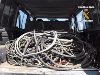 Tras la detención del vehículo e identificación de los individuos, se ha localizado en la parte trasera de la furgoneta una gran cantidad de cable de cobre en rollos de distinto diámetro, así como una radial y diversa herramienta.