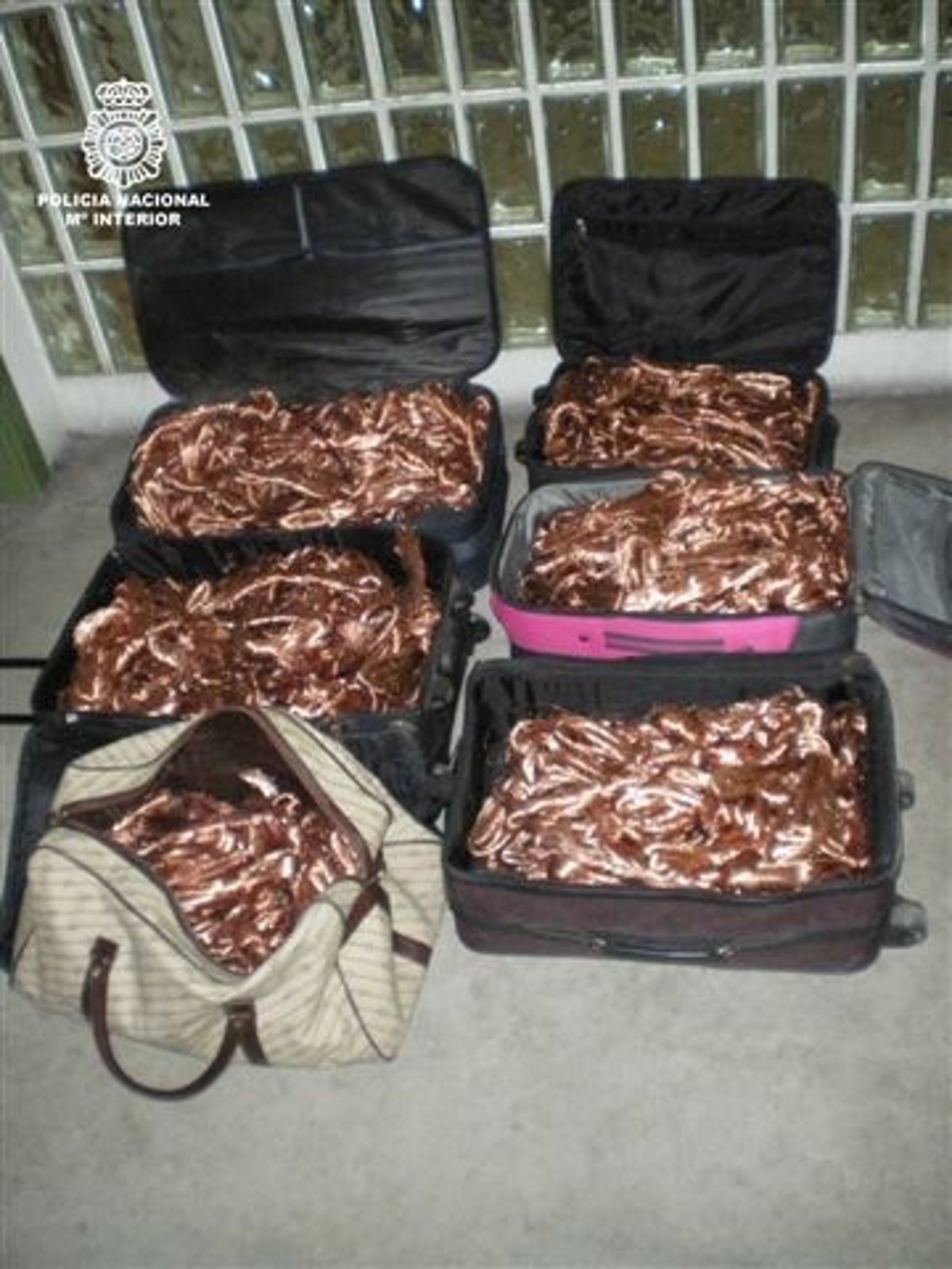 Los hechos se produjeron el pasado viernes, cuando agentes de la Brigada Local de Policía Judicial de Elche localizaron en las proximidades de una chatarrería de esa ciudad un vehículo con cuatro ocupantes, que presuntamente pretendían vender en el establecimiento una gran cantidad de cable de cobre sustraído que llevaban oculto en varias maletas en el interior del coche.