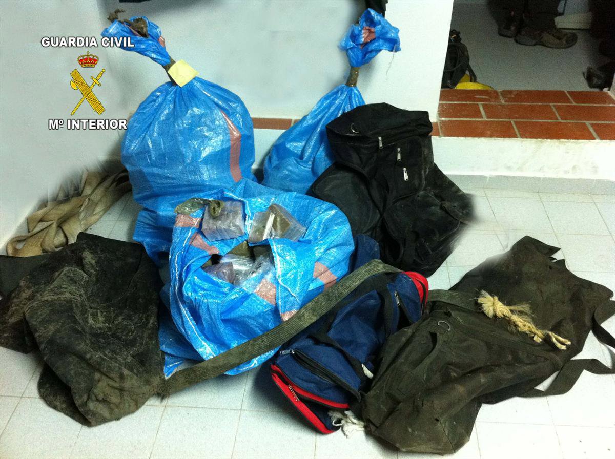 Al llegar a la playa observaron a dos personas desembarcando unos bolsos de la nave, que emprendieron la huida del lugar al observar la presencia policial, abandonando así los bolsos en la playa. Acto seguido, los agentes los persiguieron y logaron la detención de ambos tras una intensa persecución por el lugar y la intervención de la mercancía.