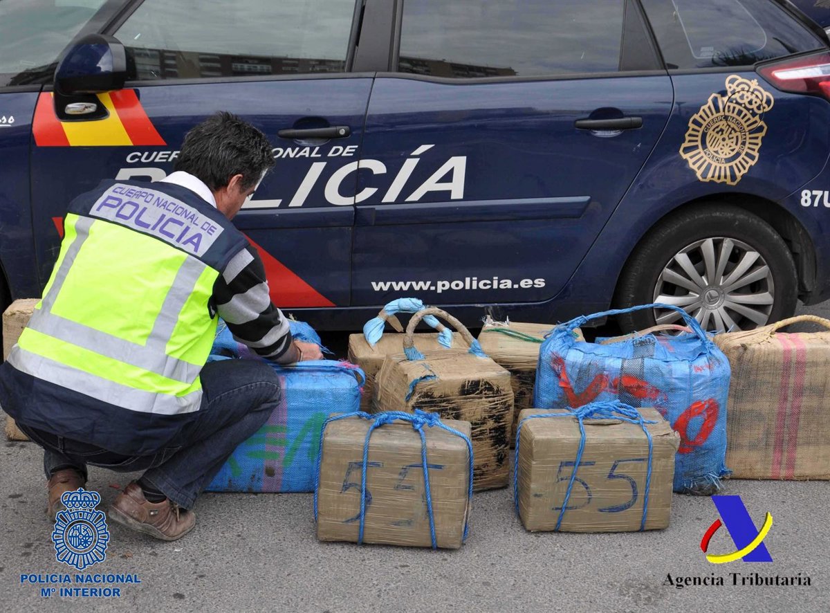 La Policía Nacional y la Agencia Tributaria se han incautado de un alijo de 350 kilos de hachís y ha desarticulado una organización de narcotraficantes compuesta por seis personas supuestamente dedicada a la introducción vía marítima de hachís en España tras haber intervenido la embarcación en la que viajaban frente a las costas de Almería capital.