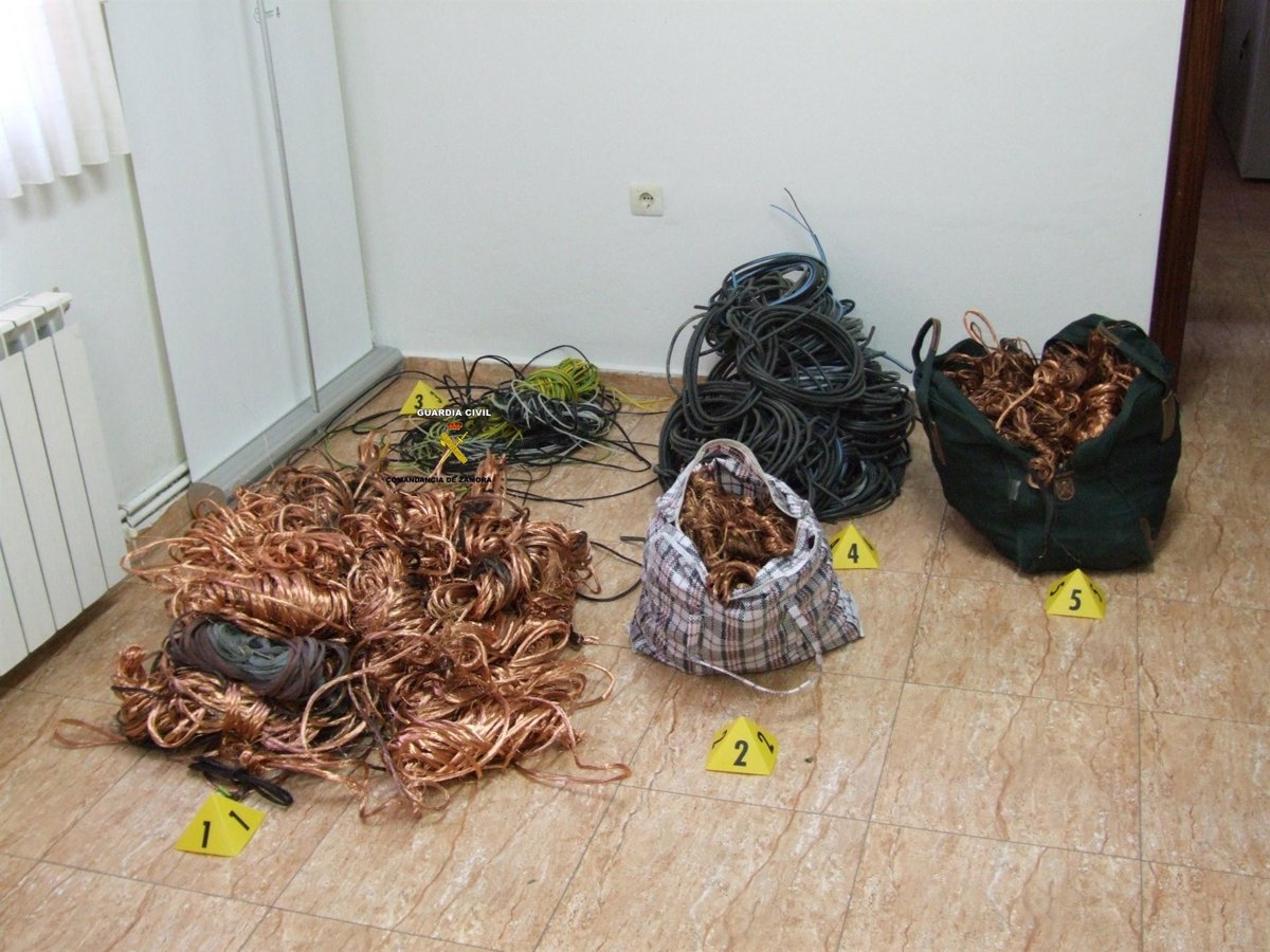 La Guardia Civil de Zamora ha recuperado cerca de 240 kilos de cable de cobre y ha detenido a siete personas implicadas en robos de cable de cobre cuando procedían a recuperar el material que tenían oculto entre la maleza en un paraje de la localidad de Villanueva de Azoague.