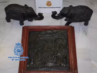 Los agentes desplazados a la tienda hallaron en su interior los objetos, dos elefantes de bronce y un cuadro también de bronce del nacimiento de Jesús con los pastores.