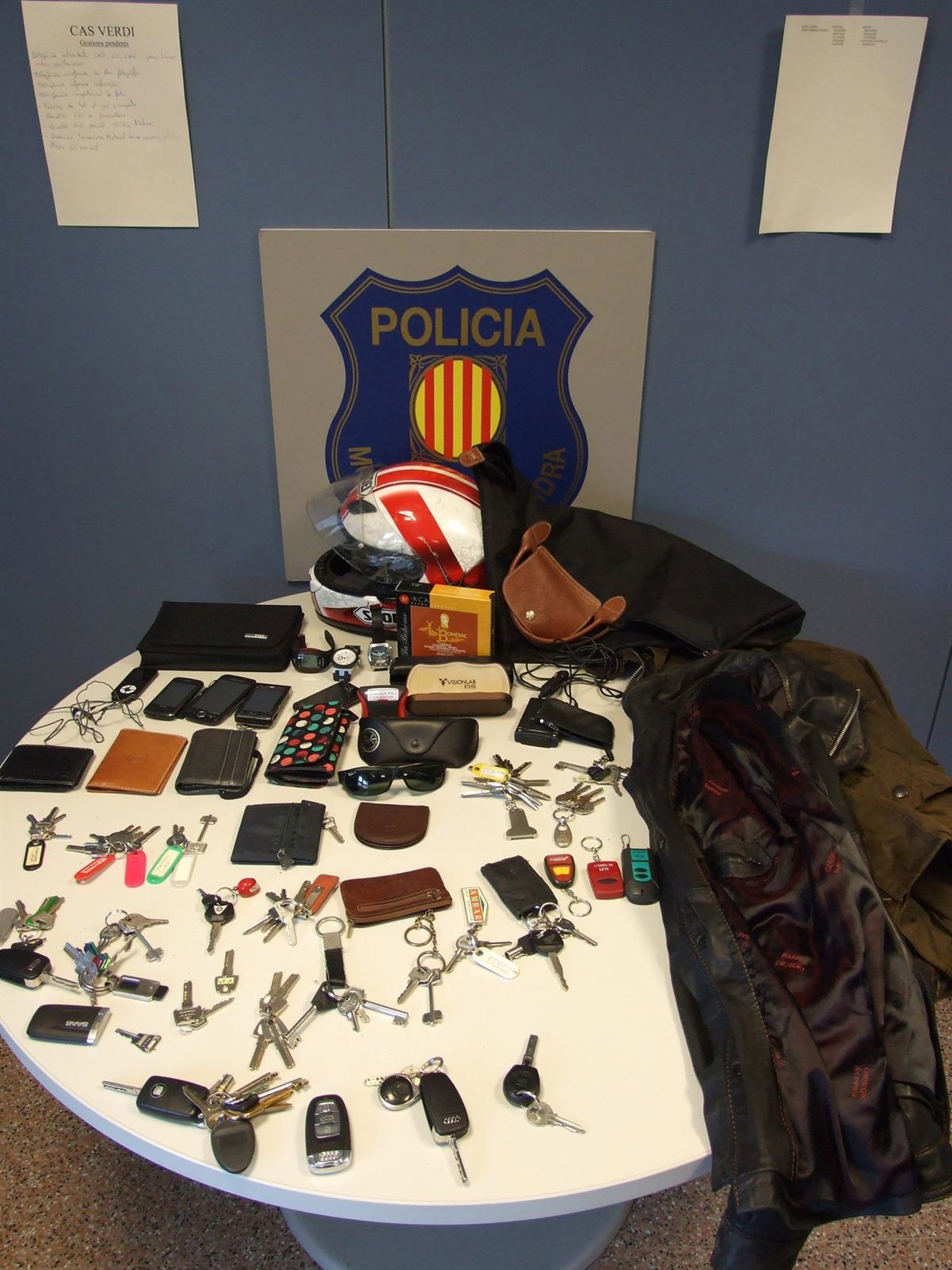 Los investigadores imputan a Jordi F.R., vecino de Vilassar de Mar, tres robos en domicilios, once robos y hurtos de uso de vehículos, 13 delitos y tres faltas de hurto, un delito de estafa y un delito de daños, pero la investigación no se da por concluida ya que la policía investiga la procedencia de los objetos recuperados.