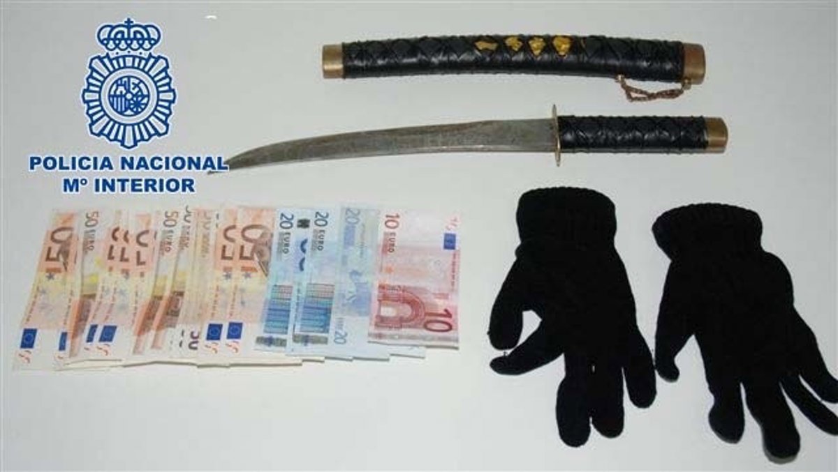 Las mismas fuentes han destacado asimismo que "instantes después, este hombre ha salido de la entidad, procediendo a su inmediata detención" y encontrándole entre sus pertenencias "una catana de 30 centímetros de hoja con la que amenazó al responsable", unos guantes y un sobre conteniendo "el botín sustraído" por valor de 840 euros.