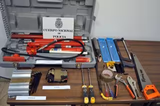 En el interior del vehículo, que era una furgoneta y había sido alquilada en Madrid, se encontraron numerosas herramientas utilizadas para realizar el butrón, como llaves de grifería, una pata de cabra, un gato hidráulico de gran tamaño, varias sierras e igualmente se intervino un inhibidor de frecuencias para anular las alarmas de los establecimientos.