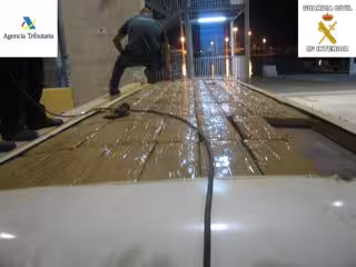Según la citada fuente, una vez realizado un minucioso reconocimiento de una furgoneta, marca Mercedes, de color blanco y matrícula belga, que embarcaba en el buque con destino al puerto de Almería, los agentes localizaron un doble fondo muy bien construido y hermético.