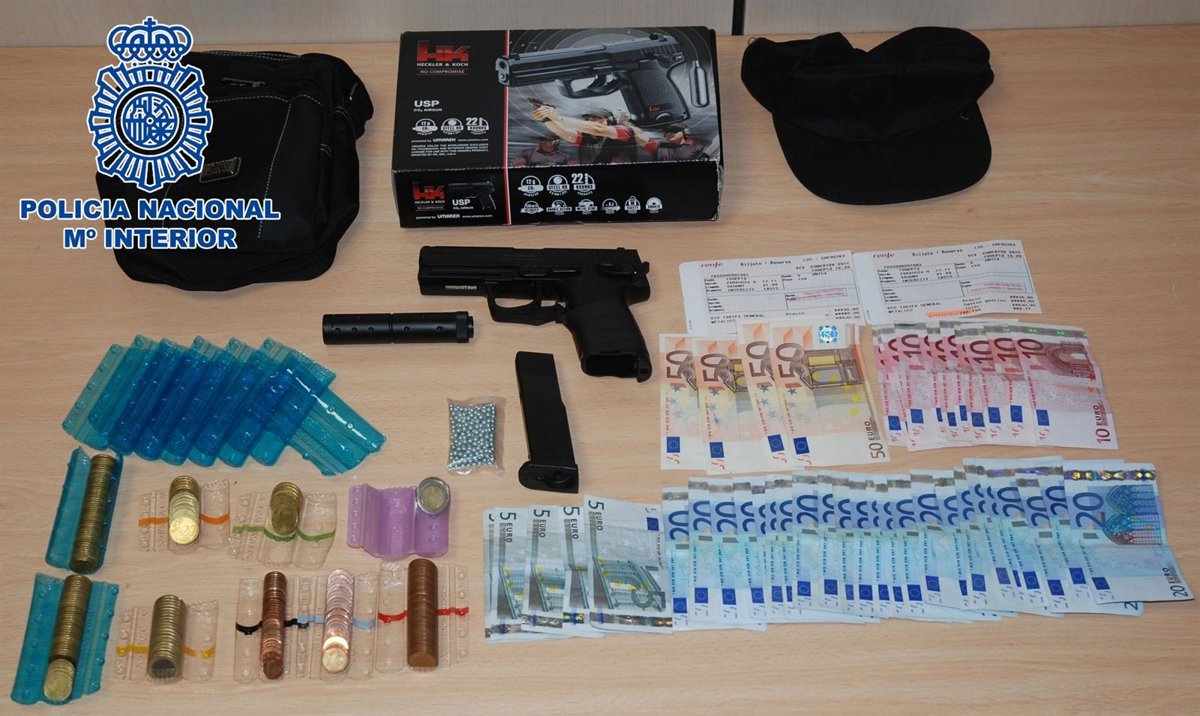 En el registro realizado en el domicilio del arrestado se intervino un arma de fuego simulada, balines, una bandolera en la que llevaba una bolsa de plástico, una gorra, ropa utilizada durante los asaltos y dinero en efectivo. La investigación ha sido realizada por agentes de la Comisaría Provincial de Castellón.