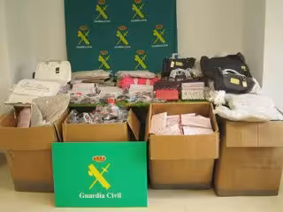 En total, la Guardia Civil ha intervenido cuatro cajas de 130 kilogramos de peso que contenían 822 objetos falsificados de origen griego: 98 bolsos, 190 carteras y 534 gafas de sol de marcas de prestigio como Louis Vuitton, Carolina Herrera y Ray-Ban.