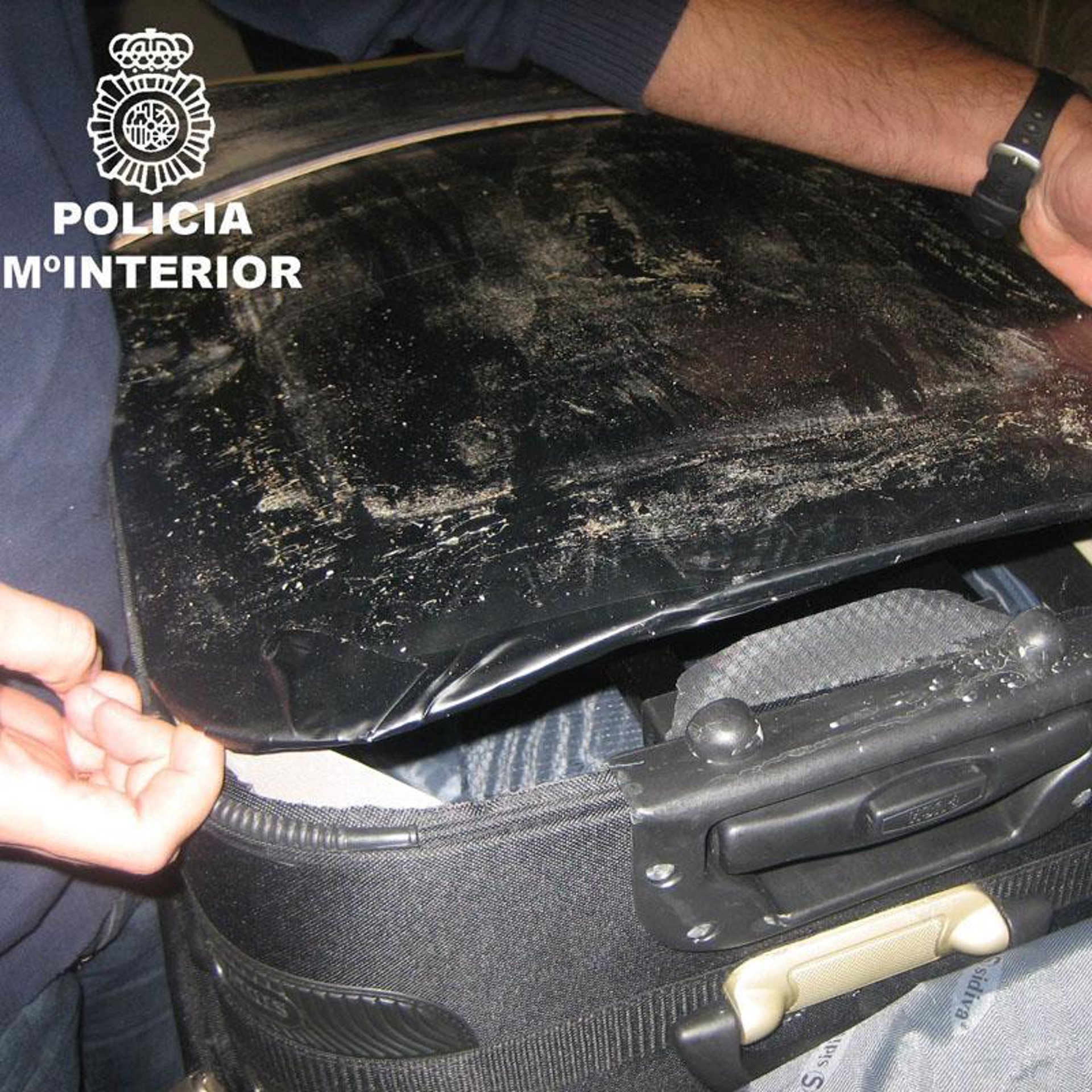 La droga estaba distribuida en dos planchas y se encontraba camuflada en sendos dobles fondos practicados en el equipaje del arrestado, N.K. de 64 años, que acababa de llegar a nuestro país procedente de Estambul.