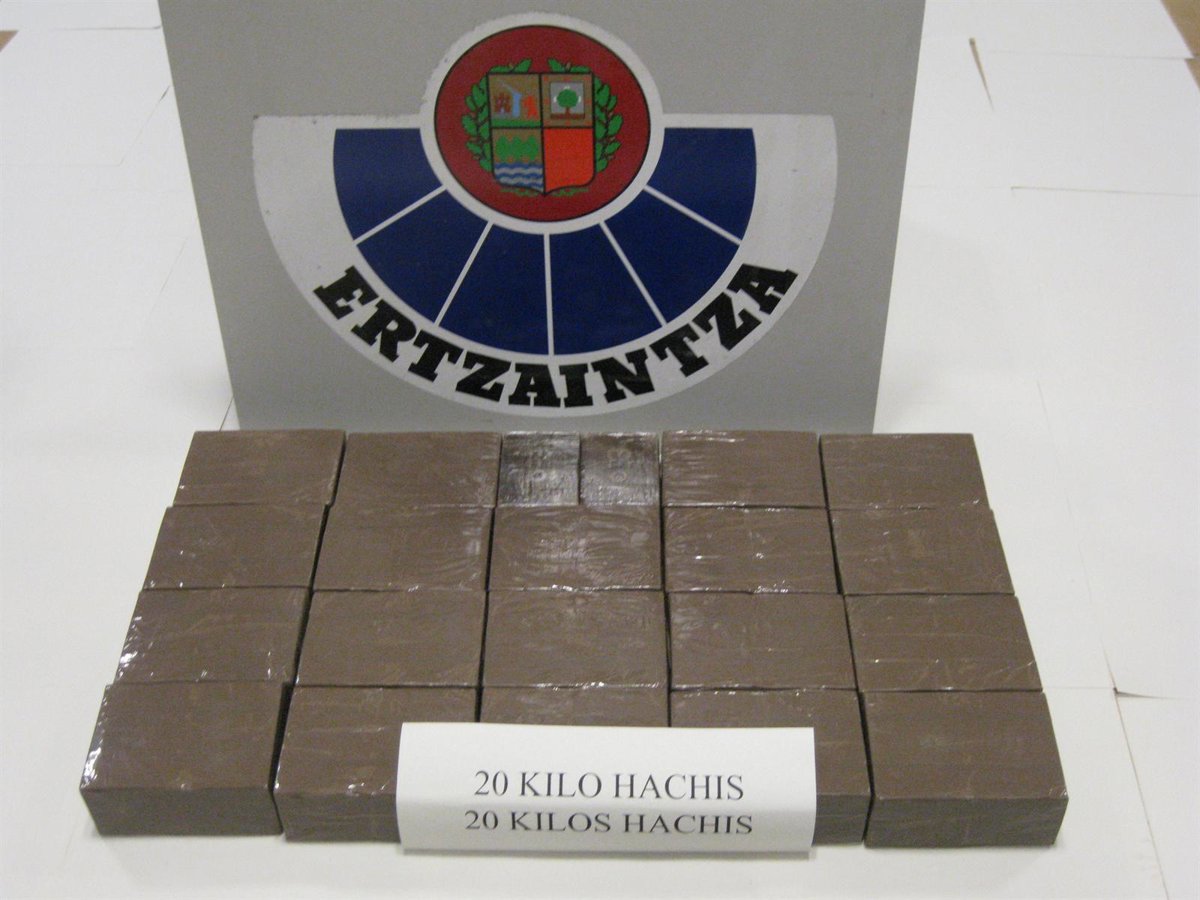 Dos varones de 20 y 29 años de edad han sido detenidos en Ondarroa (Vizcaya), como autores de un presunto delito de tráfico de drogas, después de que en el interior del vehículo en el que viajaban fueran localizados 20 kilos de hachís, según ha informado la Ertzaintza.