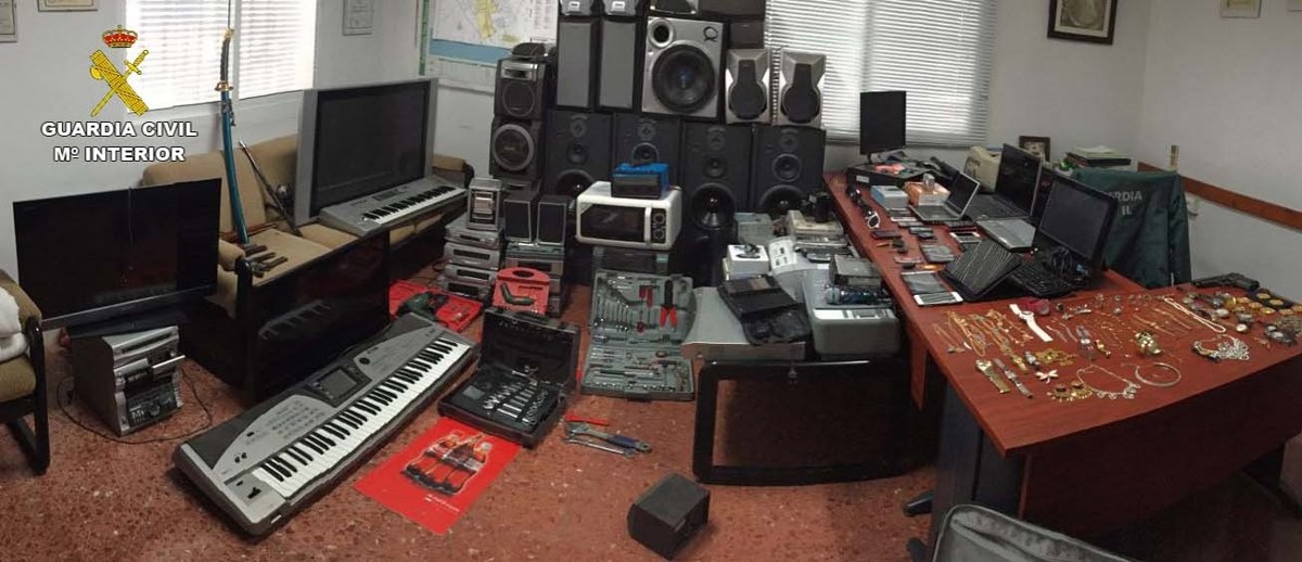 Como resultado de los registros domiciliarios, se han intervenido gran cantidad de objetos procedentes de los diferentes robos entre ellos piezas de joyería, cámaras fotográficas, impresoras, ordenadores portátiles, tablets, televisores, teléfonos móviles, equipos de música, así como el arma corta simulada, la cual utilizaron en algunos de los robos para amenazar a las víctimas.