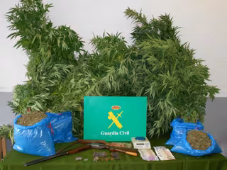 El detenido también estaba en posesión de dos armas, una carabina de aire comprimido y una escopeta de cañones superpuestos de la marca Lambert y del calibre 12mm. Esta última arma se encontraba denunciada como extraviada por su verdadero propietario.
